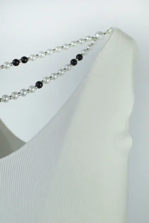 - Ozdobny łańcuszek: Delikatny, błyszczący łańcuszek dodaje sukience unikalnego charakteru i subtelnego blasku.