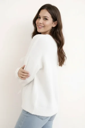 Elegancki sweter damski to idealny towarzysz w codziennych wyzwaniach – jego uniwersalny styl sprawi, że nawet najzwyklejszy poranek nabierze wyjątkowego charakteru. Wyobraź sobie, że zakładasz go na spotkanie z przyjaciółkami lub przyjemny spacer po mieście, czując się nie tylko komfortowo, ale i zjawiskowo. Zobacz też inne swetry damskie. Dzięki temu swetrowi każdy dzień może być wybitny, a ty będziesz promieniować pewnością siebie.