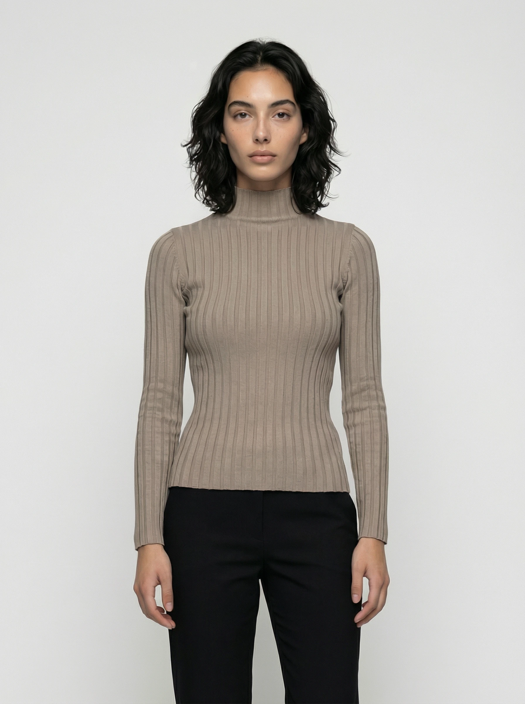 Elegancki i wygodny damski dopasowany półgolf damski prążkowany Luiza. Wykonany z wysokiej jakości materiałów (50% wiskoza, 28% poliester, 22% nylon). Idealny na co dzień i na wyjścia. Dostępny w kolorze brązowym.