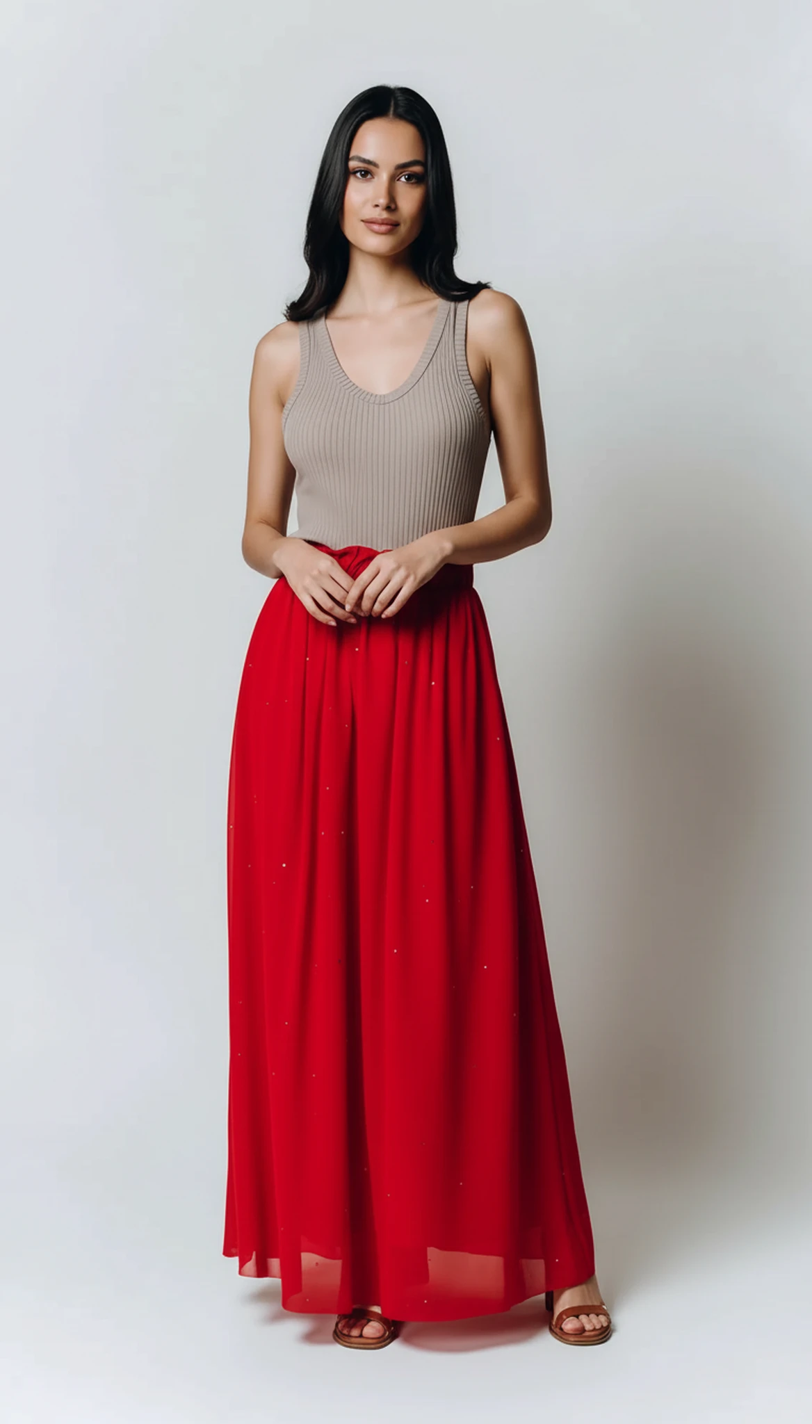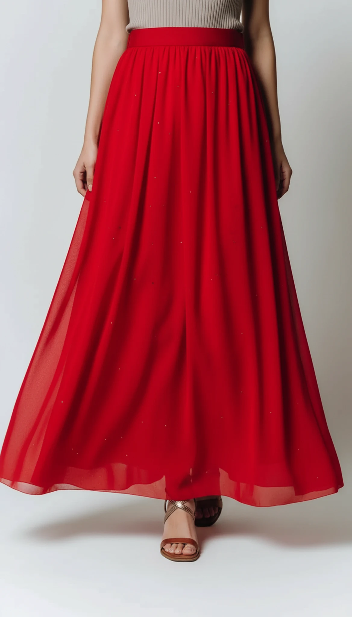 Modna czerwona spódnica tiulowa damska błyszcząca Celia – stylizacje: