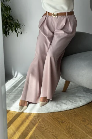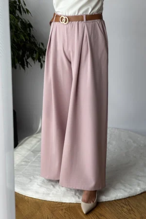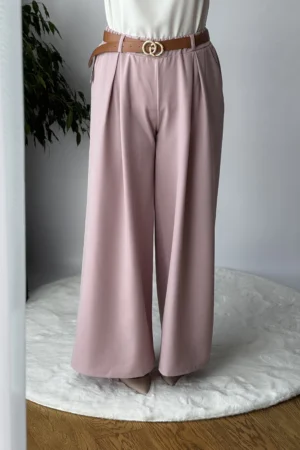 Modne, szerokie spodnie Zosia z paskiem – wygodne i stylowe. Idealne na co dzień i na specjalne okazje. Wykonane z miękkiej bawełny i poliestru. Dostępne w kolorze granatowym i różowym.