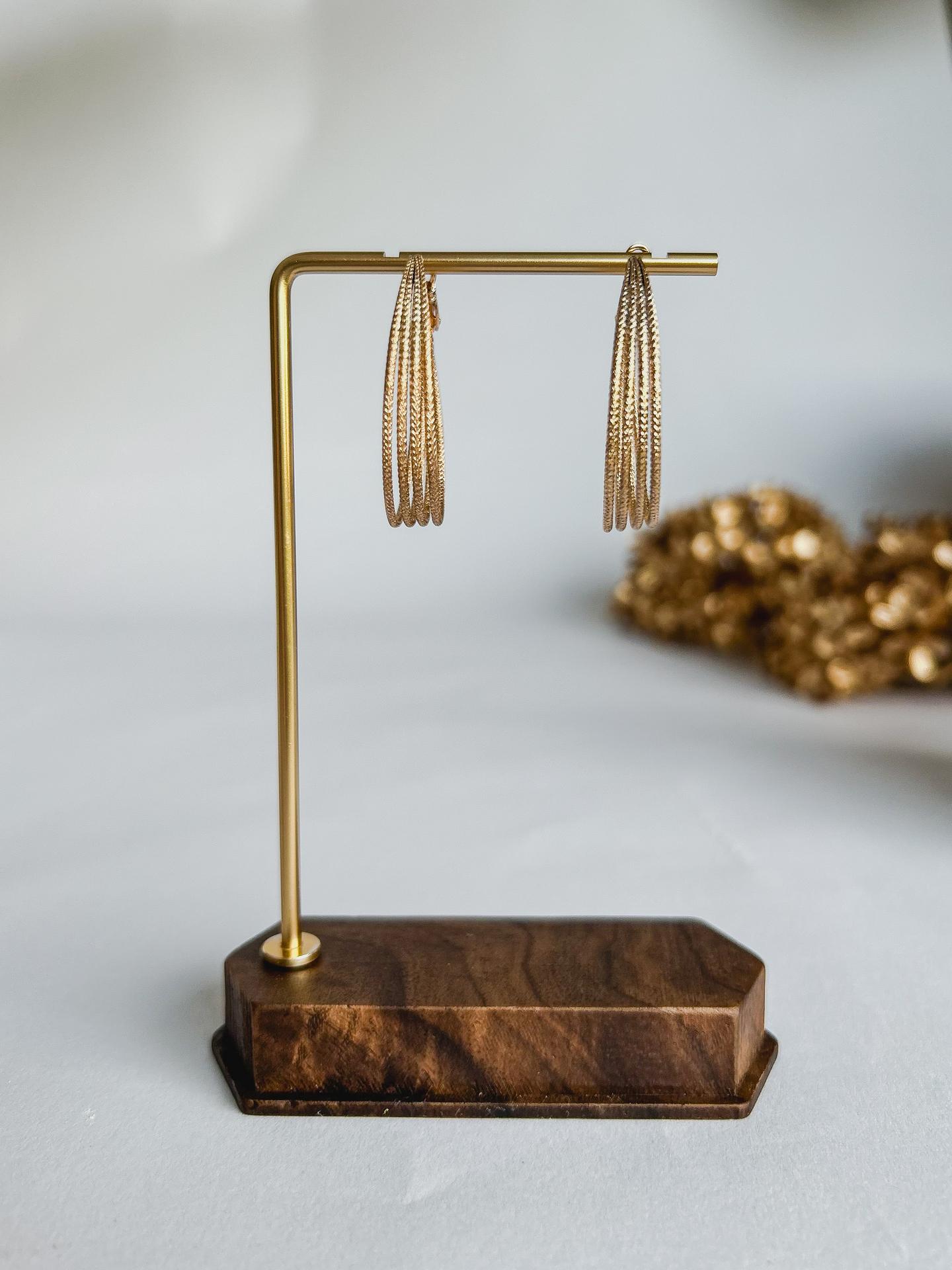 Główne cechy i zalety złotych kolczyków potrójnych kół: